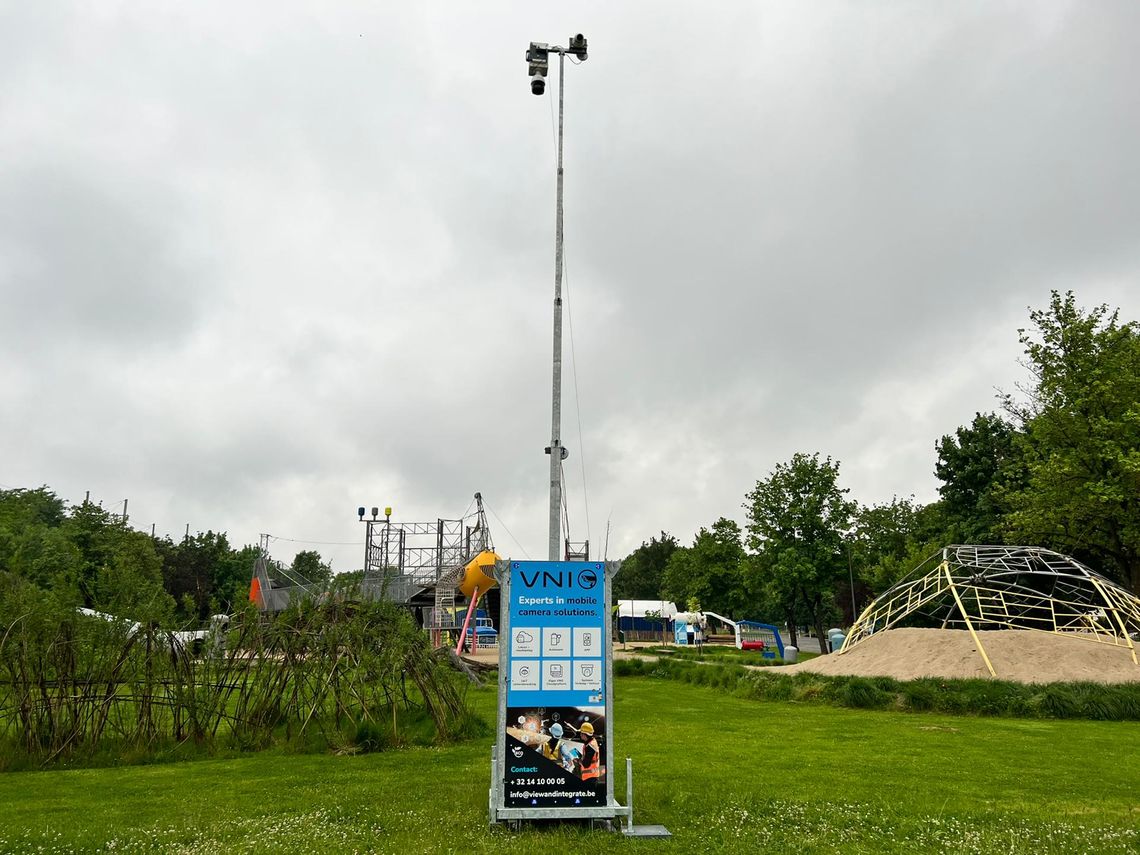 Onze zelfontworpen mast heeft maximale stabiliteit en is flexibel inzetbaar. Het robuuste model is volledig vandaalbestendig en bestand tegen windbelasting tot windkracht 10. Met een tarragewicht van 600 kg staat hij stevig op zijn plaats, maar hij blijft eenvoudig verplaatsbaar met een vorklift of kraan. Het uitschuifbaar ontwerp heeft een hoogte van 2,5m ingeschoven en 8m uitgeschoven. De mast kan afzonderlijk gehuurd of gekocht worden, maar is ook te combineren met camera’s en werfverlichting.
